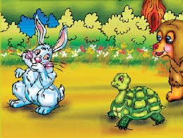 belirlemişler, yarış başlamış tavşan çok hızlı başlamış.Ama biraz ileriye gidince geri dönüp bakmış ki tavşan. Kaplumbağa hiç görünmüyor.